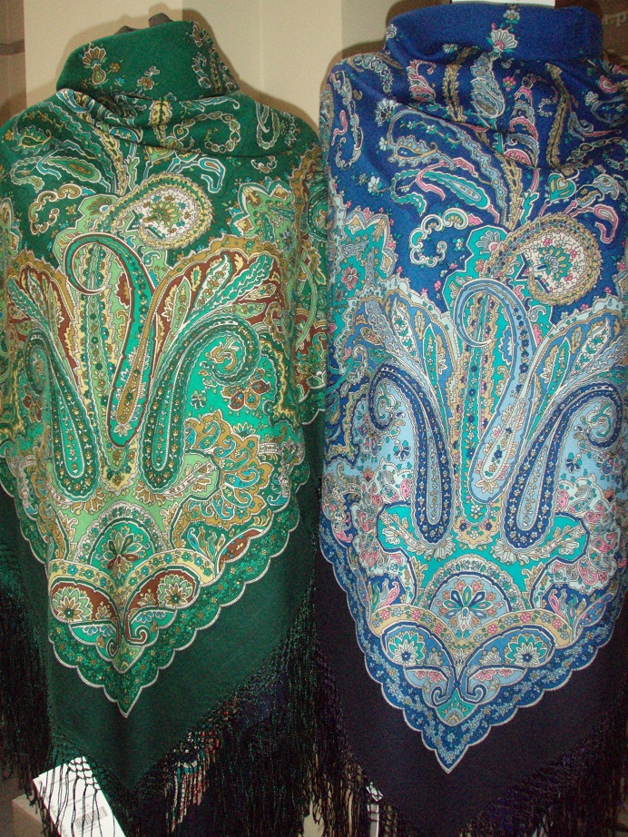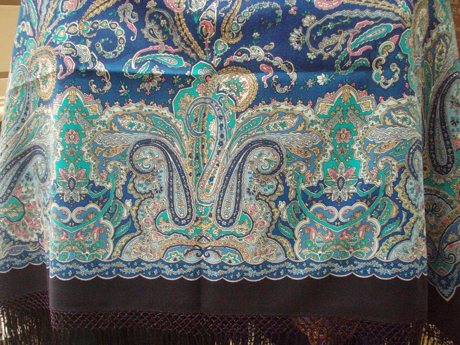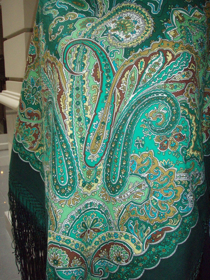 К сожалению, я ничего в "сравнительном плане" сказать про ЗЕЛЁНЫЙ КАРАВАН не могу - платков зелёной гаммы у меня никогда не было. НО!!! Шла я купить синий...а ПОНРАВИЛСЯ МНЕ БОЛЬШЕ ЗЕЛЁНЫЙ!!!! - в целом он мне видится более гармоничным.