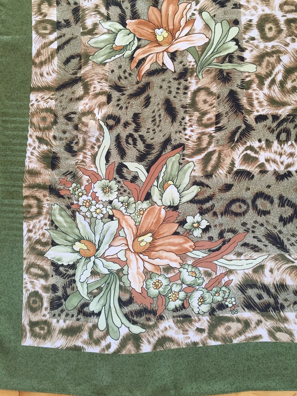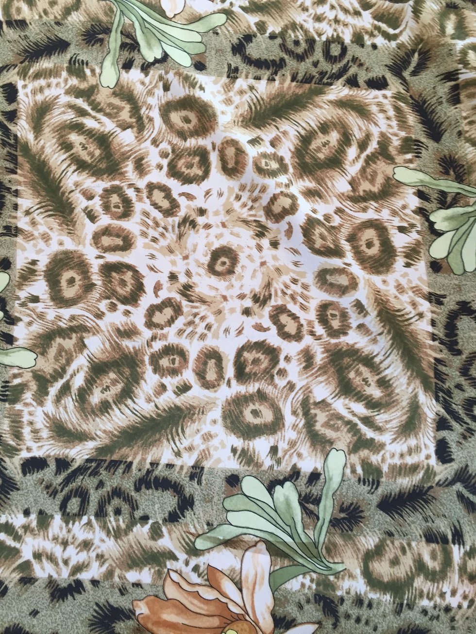 Да, каймы отрезалось сантиметров 10-12, но из-за её ширины рисунок в намотку уходит весь, а тут цвета побольше останется при ношении. Я хотела бы платочек носить, а не "лежать".