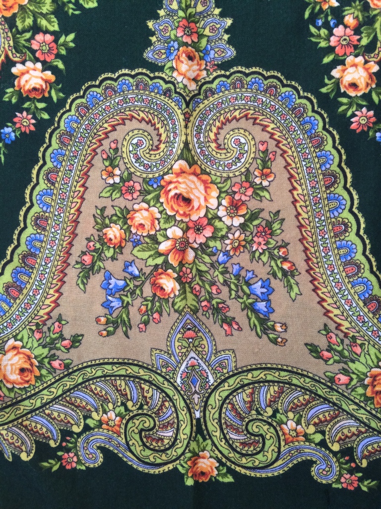 УЖ на что у Черных глаз зеленый темный,но в платке У камина он ещё темнее,гуще...Зато на нем-самые простые,родные колокольчики!