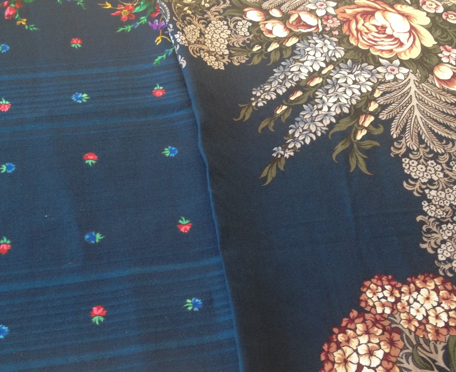 Понятно, что платок и шаль не сопоставимы по качеству ткани, но цвета очень близки