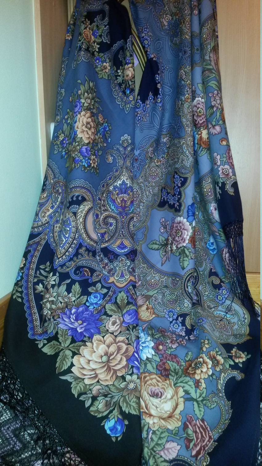Просто уточнение - Цветы России не шаль, а платок 146х146. В своё время именно это и помешало мне его купить.