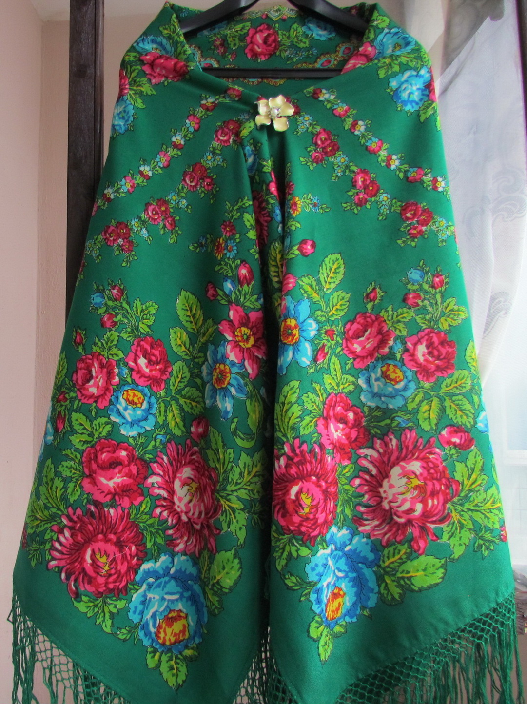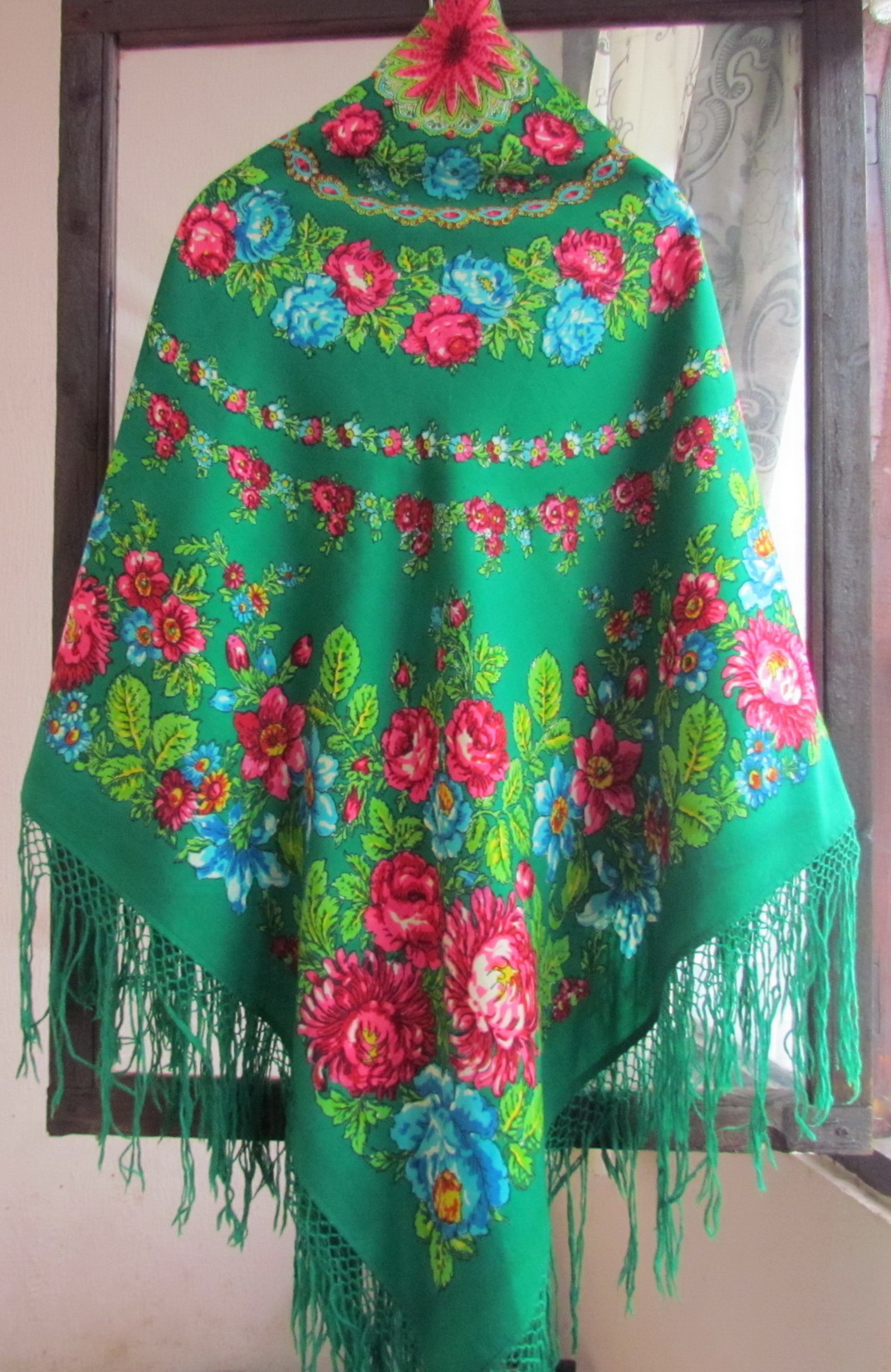 А вот то, что платки раскрывают всю свою красоту, когда их любишь, это вы совершенно верно подметили. Привезла я его в тесном целлофановом пакетике в совершенно замученном виде. Шутка ли - пролежать столько лет! На балконе подышал, расправился (для меня это мальчик) и распустились хризантемки. После утюжки с паром еще краше стал - розы загорелись ярко-красным и розовым родамином. Смотрю и диву даюсь: ну как можно ТАКУЮ красоту от народа скрывать?! А вообще он мне немножко елочку новогоднюю напоминает