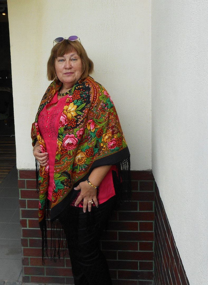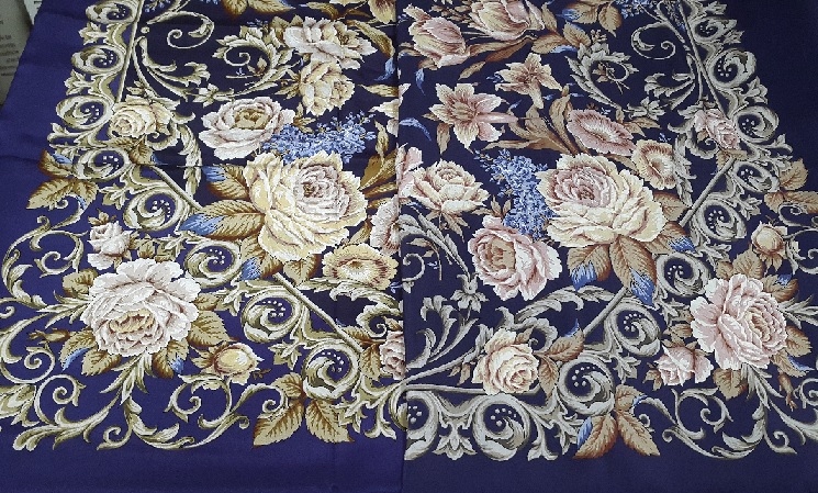 Еще одно небольшое сравнение, которое, может быть, кому-нибудь будет интересно. Тоже Елена Жукова. Недавно, листая интернет-каталог, обнаружила знакомый и одновременно незнакомый платок. С живыми пудровыми розами и серебристой вязью там, где раньше было золотое шитье. Оказалось, что вместо колорита 13 теперь на сайте 13а. Мне этот новый колорит очень понравился. И повезло, встретился в магазине. (Извините, при уменьшении качество фото ухудшилось. Не знаю, как разместить кликабельное фото, чтобы его можно было увеличить при просмотре.)