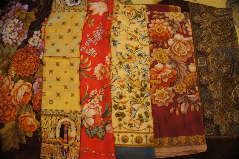 Сегодня я, пересмотрев свой профиль, обнаружила, что больше всего у меня платков не того автора, за работами которого охочусь, а совсем другого - Валерии Фадеевой. И, раскладывая платочки этого автора для фотосессии, прямо захлебнулась от счастья, что могу наслаждаться такой красотой, которую она творит. Она настоящая королева цветочных букетов!