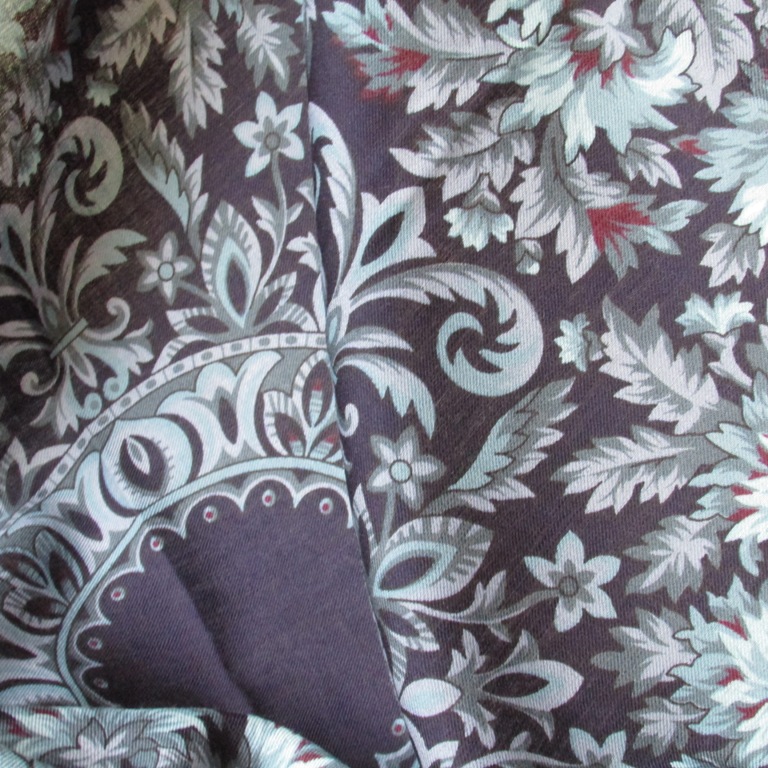 Кусочек красной шали с лилиями. Необычно и непривычно розовое на красном. Лилии солируют, а розы прячутся, надо приглядываться, чтобы их найти. Зеленые листики слишком выделяются, а вот коричневые элементы более гармоничны, на мой взгляд.