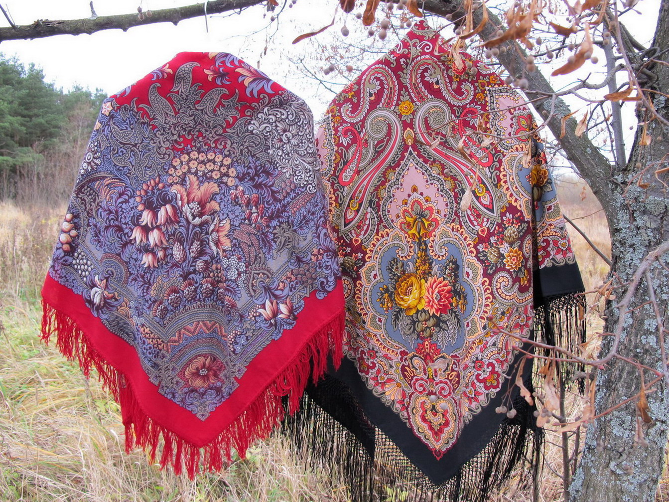 Раньше не обращала внимания, как много общего у этих платков, хотя весовая категория разная. И насколько заметно, что один и тот же автор.