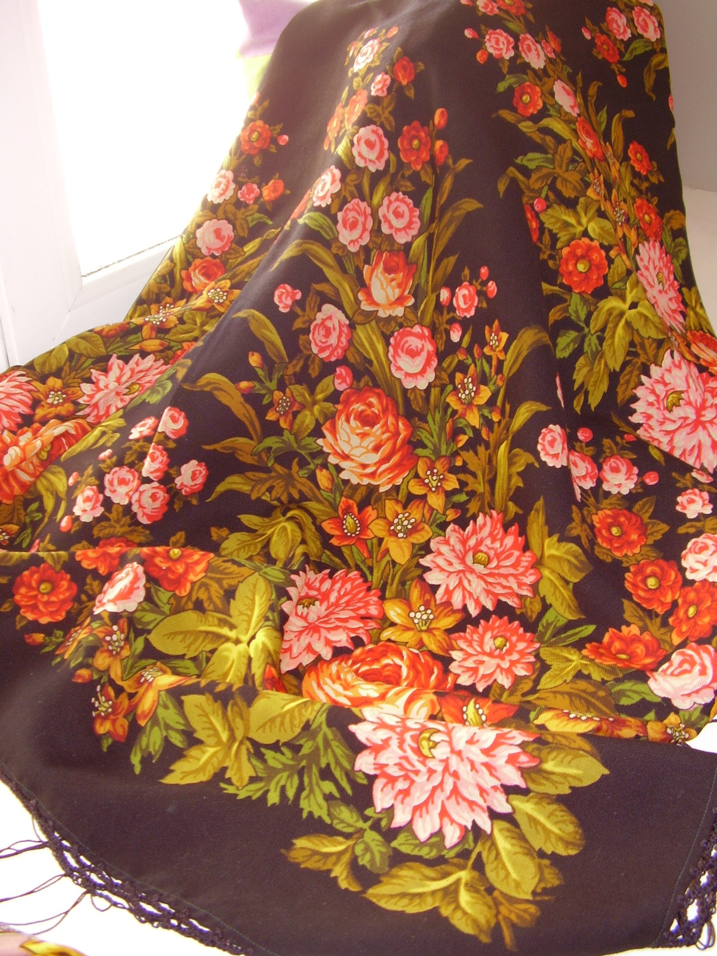 Кто там был не доволен программой? Вот за один такой плат уже поклон ППМ! Умопомрачительной красоты платок, цветы такие, что смотреть и смотреть