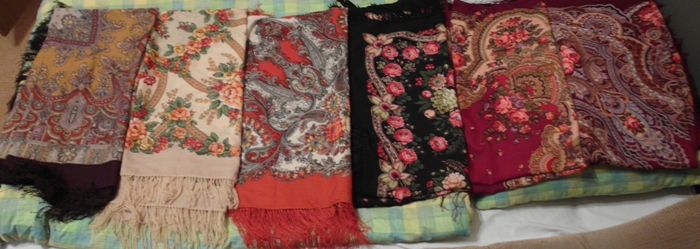 У меня есть несколько таких же платочков. Конечно же, Цветет сирень -7, Казачка и Молитва( но они в других колоритах), Сон бабочки рыженький, Черные глаза, Душевный разговор и Звонница( в других колоритах)