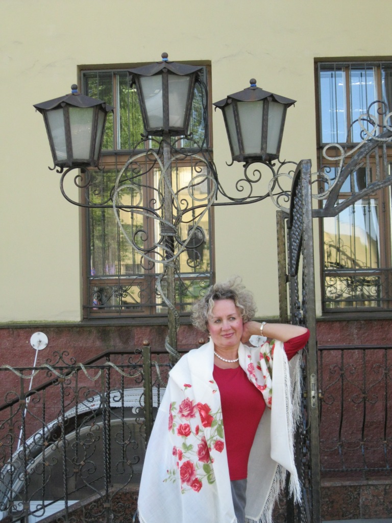 Здравствуйте, милые девушки! Кажется я много чего пропустила, завтра получше рассмотрю и почитаю. А сегодня пробежала и "на скорую руку" просмотрела - промелькнули "Розы на снегу". Испытываю сильное недержание и выкладываю свои "Розы". Проездом через Москву на Белорусском вокзале я примеряла шелковый вариант этого платка, подумала: чего уж там, белое полотно и три цветочка, никакого тебе шика... А в Минске уже примерила шерстяного его собрата и восхитилась. Какие ассоциации возникают? Если бы его можно было назвать по типу "Разводной", я бы назвала "Девственный", "Чистый", "Непорочный", и он не струится, а действительно пушится как снег. Да и какого еще шика нужно? Он и она, снег и роза...