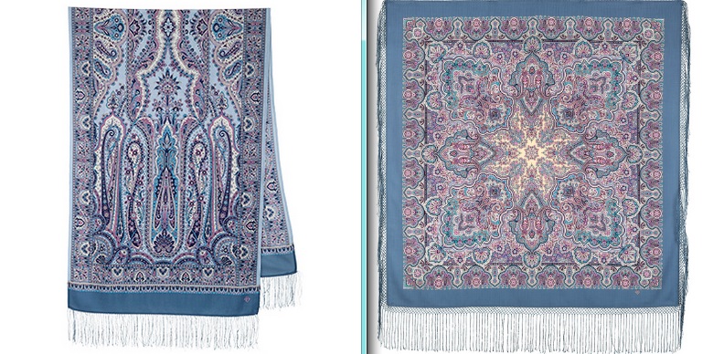В голубой богатой невесте много розового. А палантин холоднее и контрастнее.