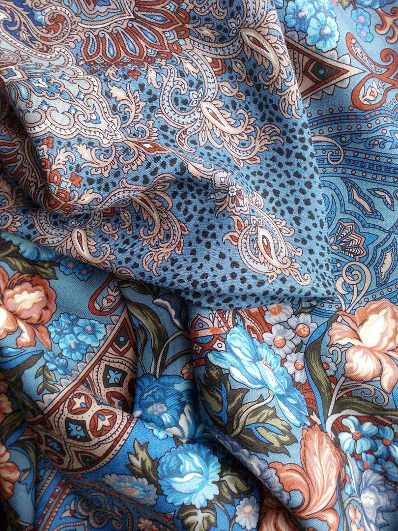 Видела уже 4 варианта. И все разные. У каждой свое настроение. После показа Марины -Рощи и с ее помощью ^% я купила еще одну, видимо самой последней печати, потому что ткань очень мягкая, шелковистая, такая же, как на моей Азе 27.