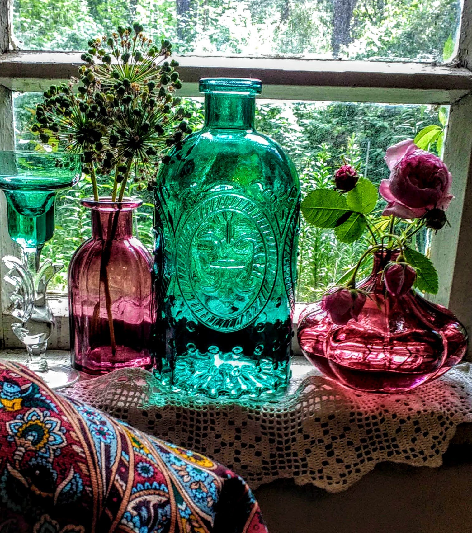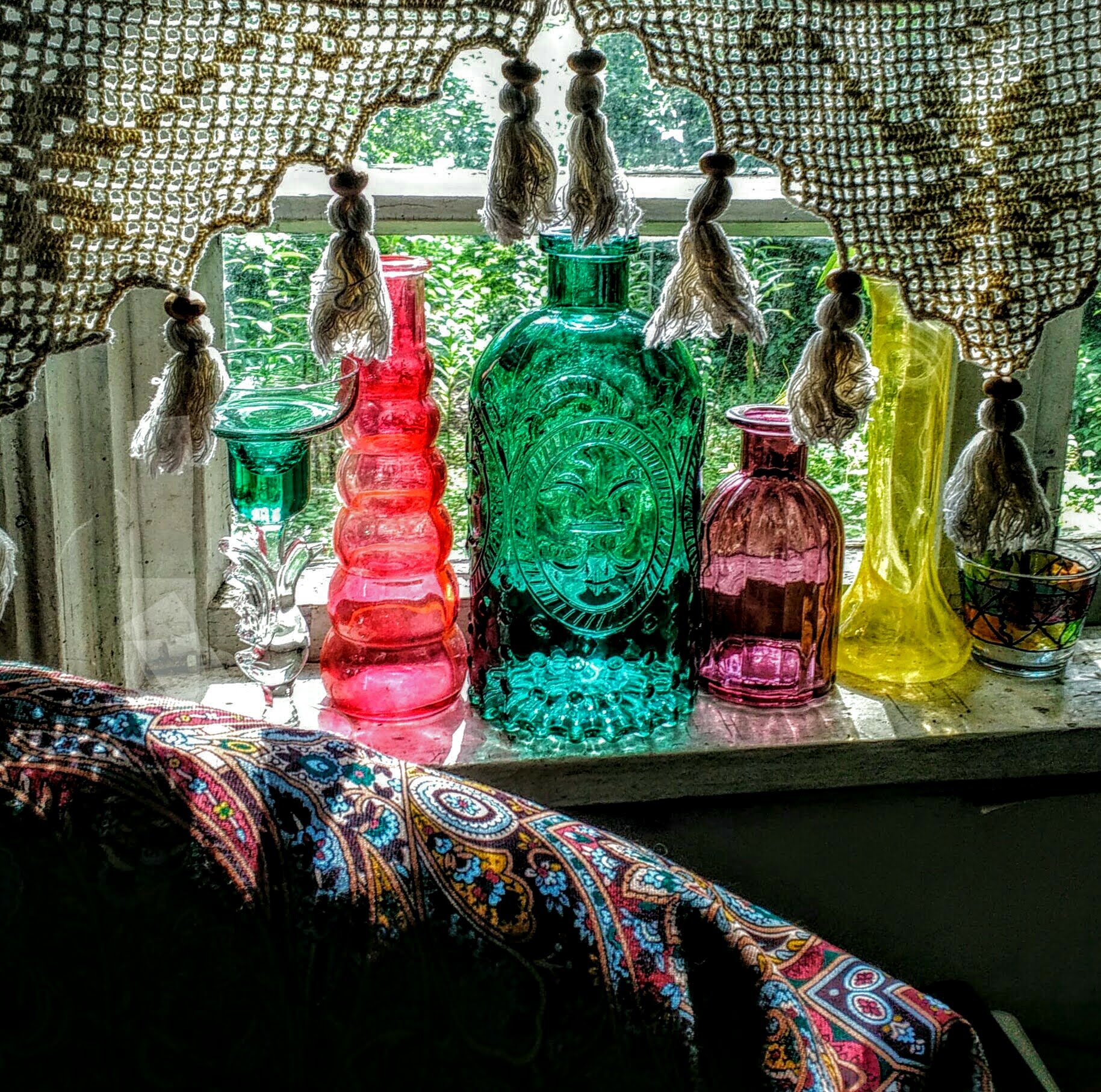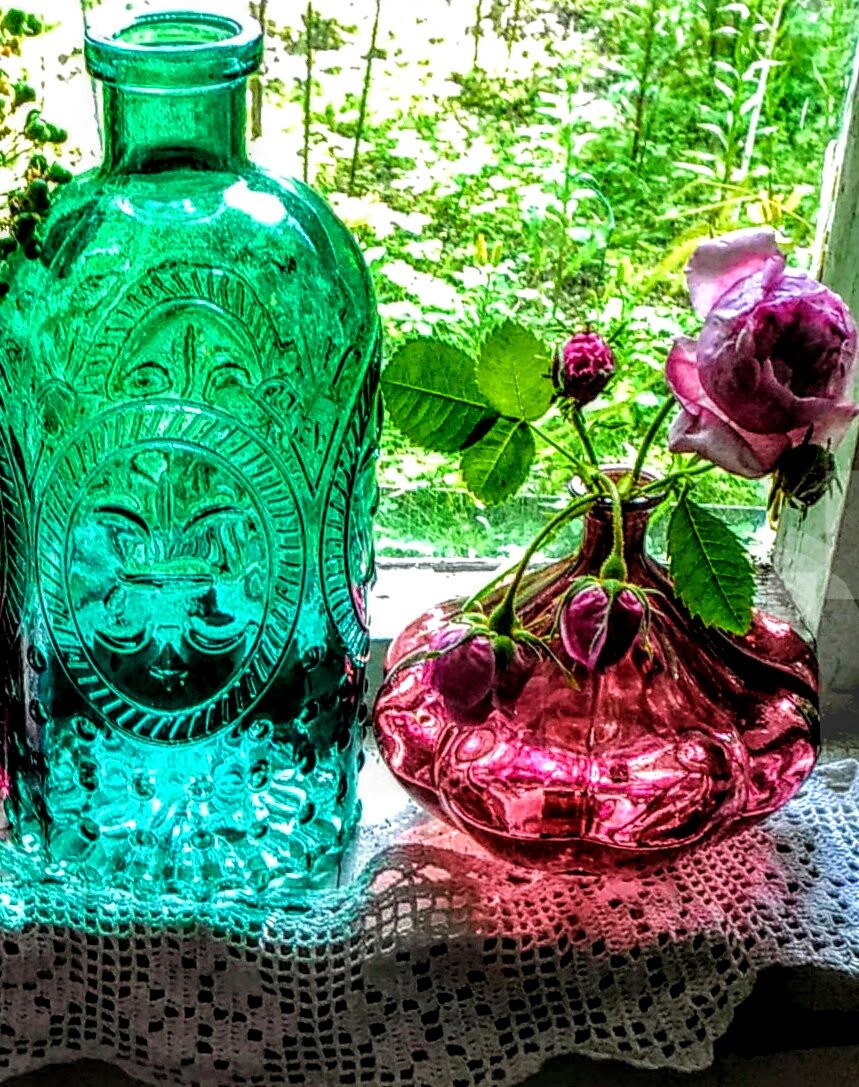Галина, как же мне нравятся ваши стекляшечки! И еще очень нравится первая фотография - на ней очень красиво всё сложилось по композиции. И такие милые кисточки на занавеске.