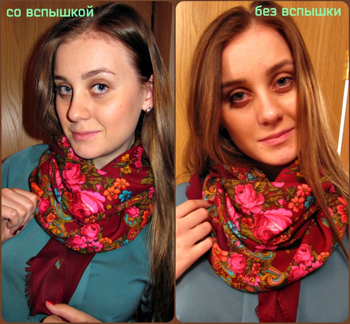 У меня тоже есть пара фоток в Святочном. Правда на одном, платок на голове (один из самых носимых мной платков и ткань теплая, старая и красиво смотрится), а на втором фото я пыталась сделать селфи, чёй то как то не совсем получилось, но платочек то какой яркий