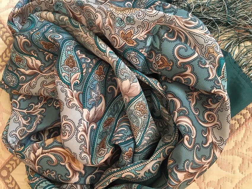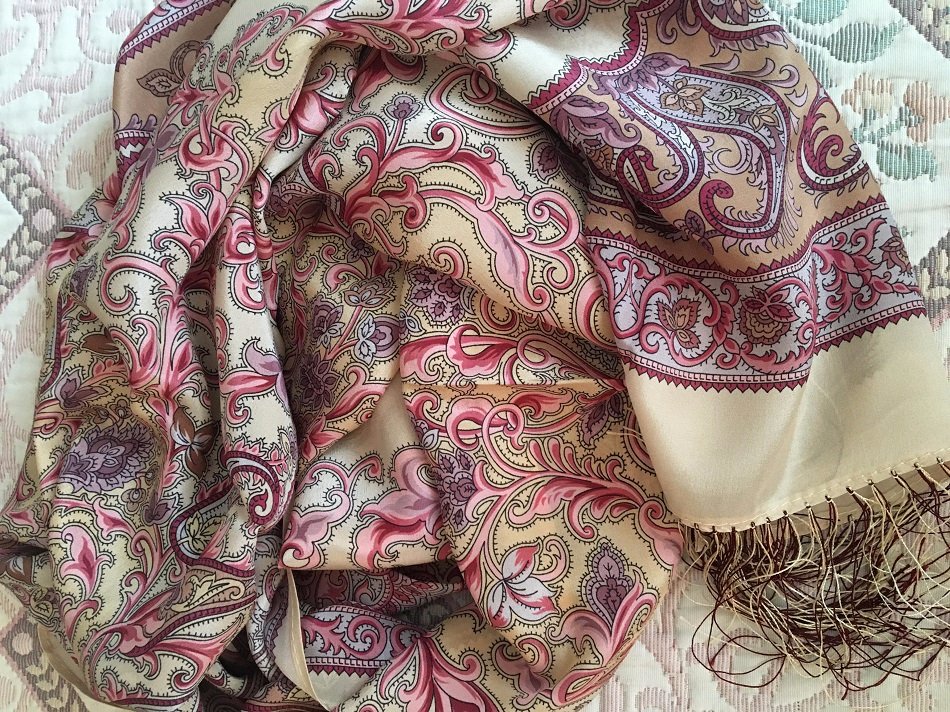 Был у меня один шелковый шарф Валентины Созиновой "Рассказ о странствиях" бордовый,