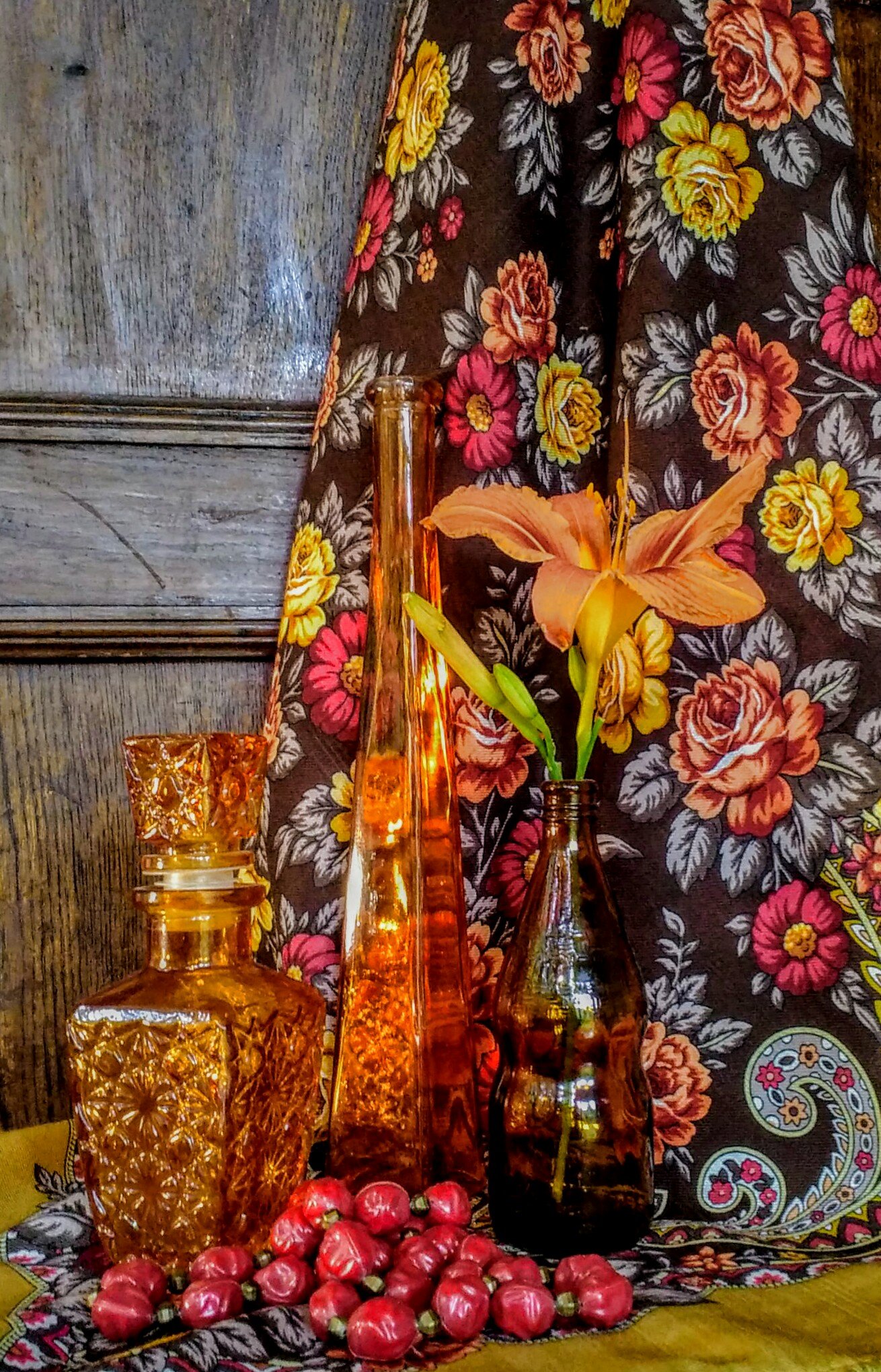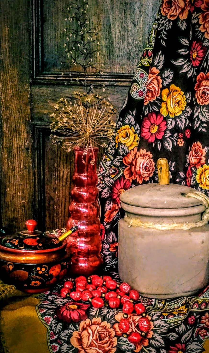 Галlина, скучала без Ваших "бутылочек"! Они прекрасны! А вместе с платочками, да с "народной" посудой и стареньким бидончиком (вроде бы), так всё дышит красотой и уютом! А бусики - это украшение, или, может быть, перчики сушатся?