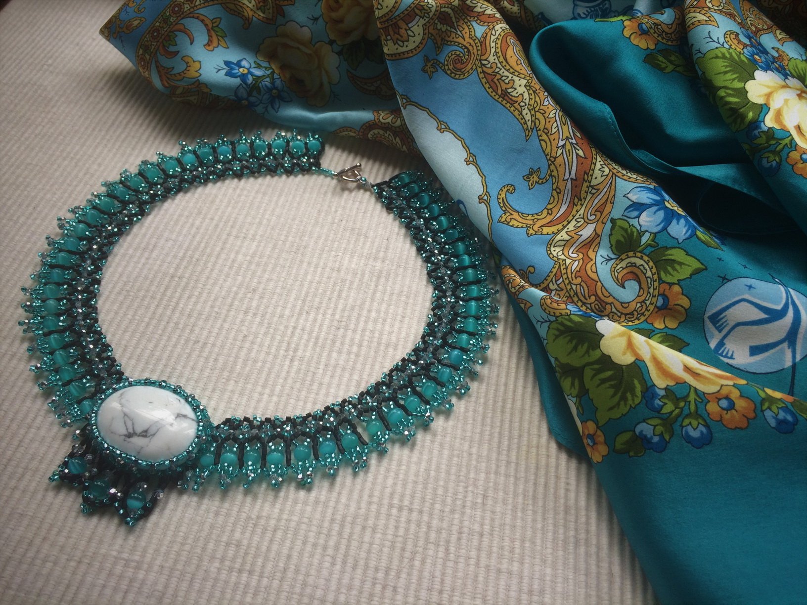 Зарина, какой у вас творческий июль! Очень красивые колье и прекрасная гармония с платком.