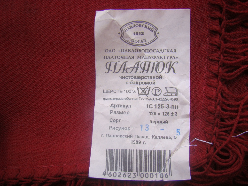 Этикетка от платка "Старинный романс" -5 Т.Сухаревской