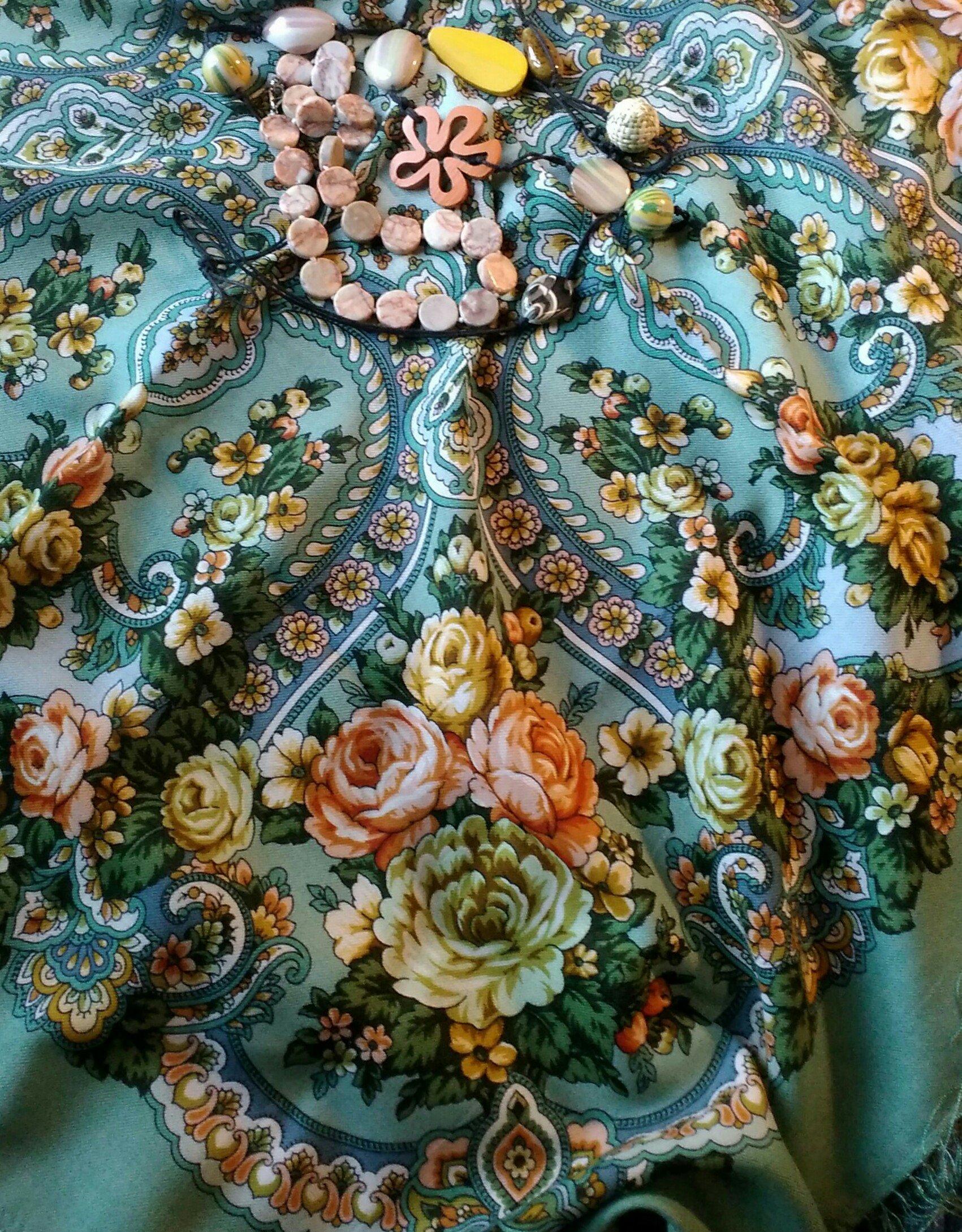 Когда я ее впервые увидела, сразу поняла, что мне НАДО. И что носиться она будет с ворохом украшений - а ведь далеко не каждый платок это выдержит!