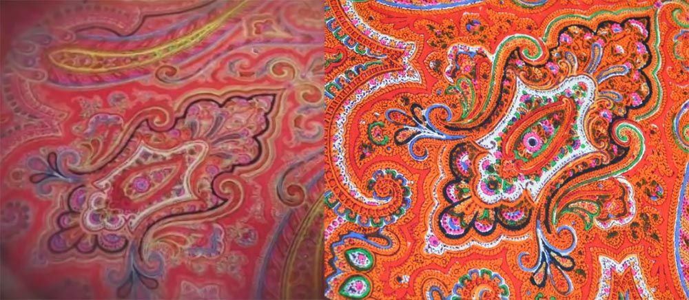 Слева - фрагмент платка из проекта "Ремесло". Выпуск 72: "Платки и шали".