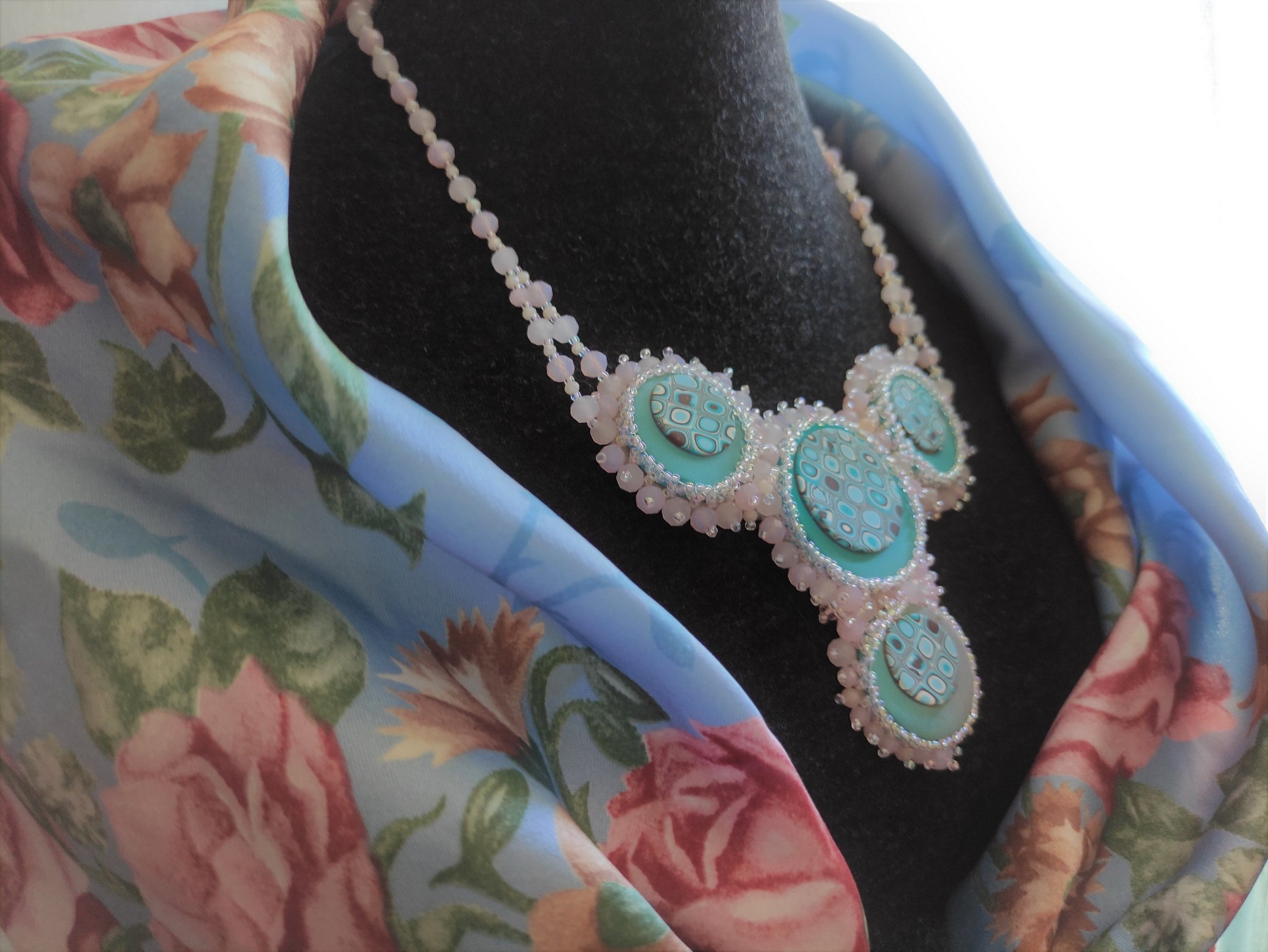 - 841-1 Девичник. Колье Целительная сила термальных источников, глина фимо, мозаика Дома Грёз, август 2020