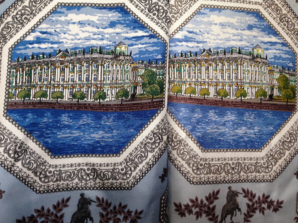MashaL показала саржевый платок Санкт - Петербург. У меня есть самый первый выпуск этого платка, а недавно появилась возможность сравнить его с платком прошлого года выпуска. Краски на новом платке более тёмные и сам фон намного темнее. Я называю его "грозовой".