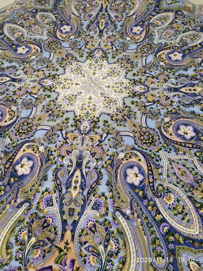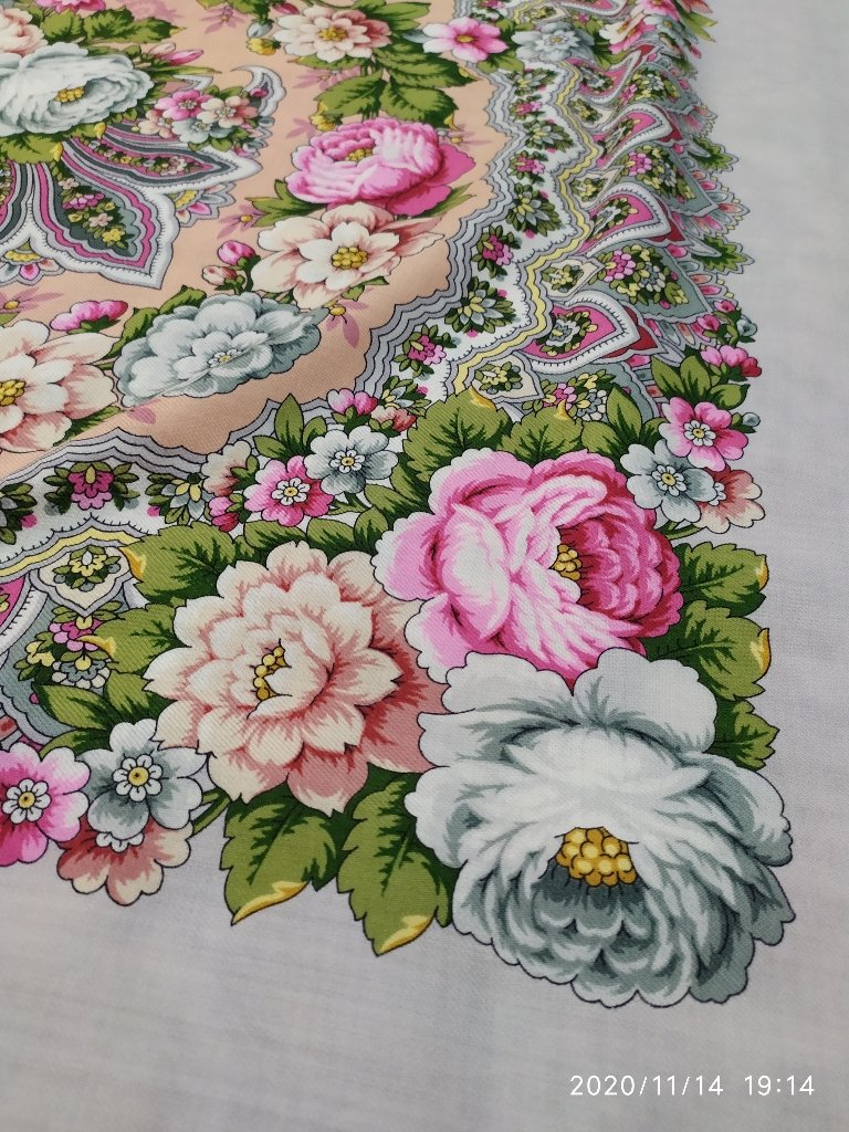 Рисунок:1722-16. Пришел с браком. В центре капли краски. На кайме непрокрас. Кстати и шаль Желанная". Валерия Фадеева. Рисунок: 1744-2, тоже пришла с браком. На кайме полоски осветленные, словно выгоревшие . На фото этого не передать. Эти шали заказывала с официального сайта магазина.