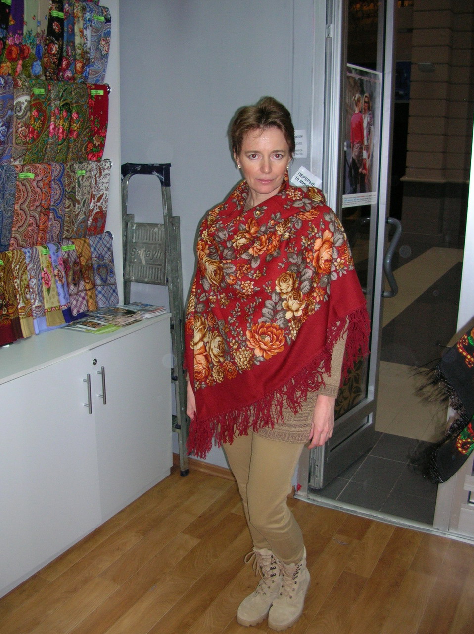 Демонстрируем ношение платков и шалей.