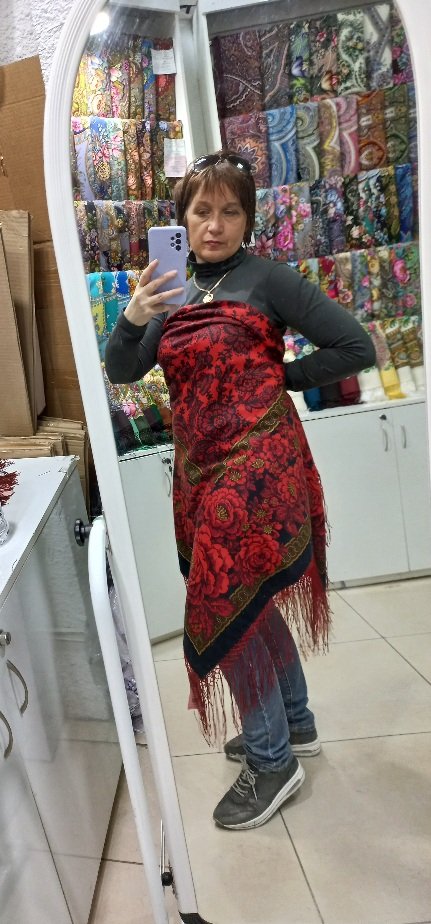 Уже неделя как я не могла понять, облечь во что-то свое изменившееся отношение, новое настроение к шали Зрелый возраст с красной бахромой. С красной! С авторской! Ну, конечно же, она должна быть красной! И только! Всего-то лишь бахрома, а все другое, всё! Нет, Злата Ольшевская - истинный Гений! Ушла грусть, печаль, драма, помпезность. Я ошарашена переменой, я вдохнула в ней полной грудью! Появилось бесшабашность, озорство, молодость! Молодость в зрелом! Жажда жизни, любовь, страсть! И как же подходит ей, теперь краснокрылой, вот эта мелодия и песня, когда-то бывшая такой популярной давныыым-давно! Вспомним прекрасную Лолиту Торрес! И кинофильм "Возраст любви". Да, да, да, именно что-то подобное и зазвучало во мне, когда мне захотелось завернуться в эту шаль по-хулигански))