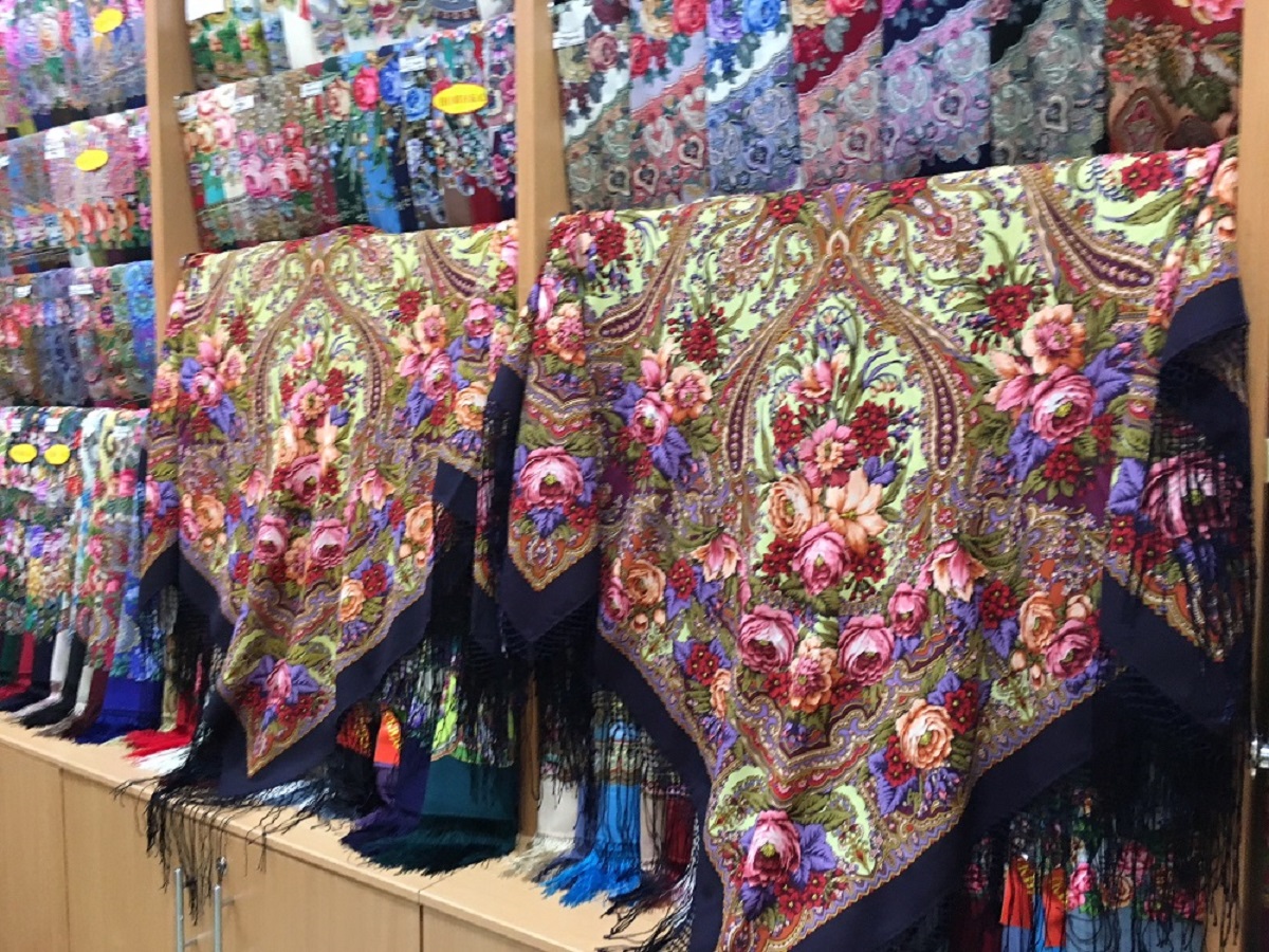 У меня шаль старой печати,и я ее принесла в магазин. Где мы с Орешкой сравнили платки.