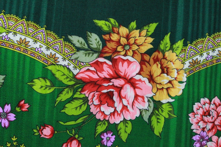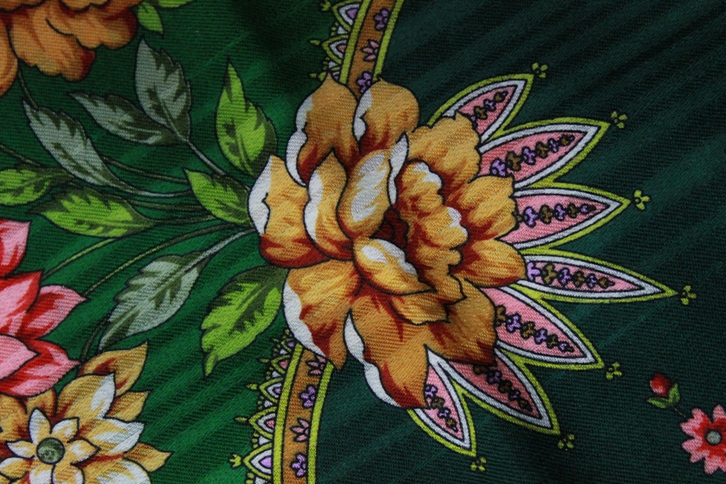 Ну вот всё-таки меня порой очень удивляет выбор колористов мануфактуры! Взять, например, Таинственную музу-10, показанную Алёной. На мой взгляд, очень симпатичный узор, цвета подобраны хорошо, все в теплой гамме. Но вот кайма живет совершенно отдельной жизнью! Она холодного бутылочного цвета, который вообще из другой оперы. И так бывает довольно часто. Я, конечно, не художник, но моё представление о цветах совсем другое!