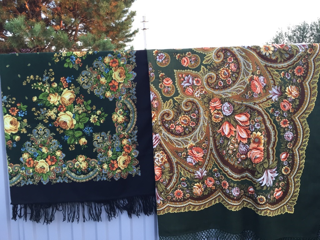 Фрекен_Жюли Юля, мне кажется "шалит" ткань, она у всех трёх платков разного качества. У меня - толстенькиий колючий плат, у Кати - более тонок и почти такой же по толщине, как и новый. А новая ткань в добавок ещё и шелковистая. Вот и хулиганит при съёмке - слегка отражает свет и поэтому смотрится на фото более светлой, что ли... В реале всё не так.