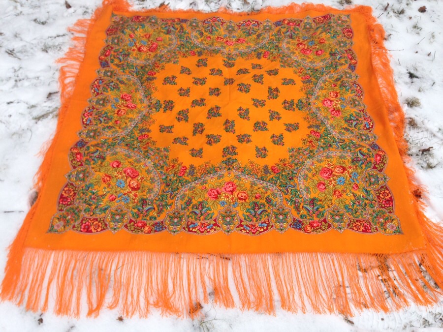 Платок 125х125, который меня поразил свом ярким оранжевым.