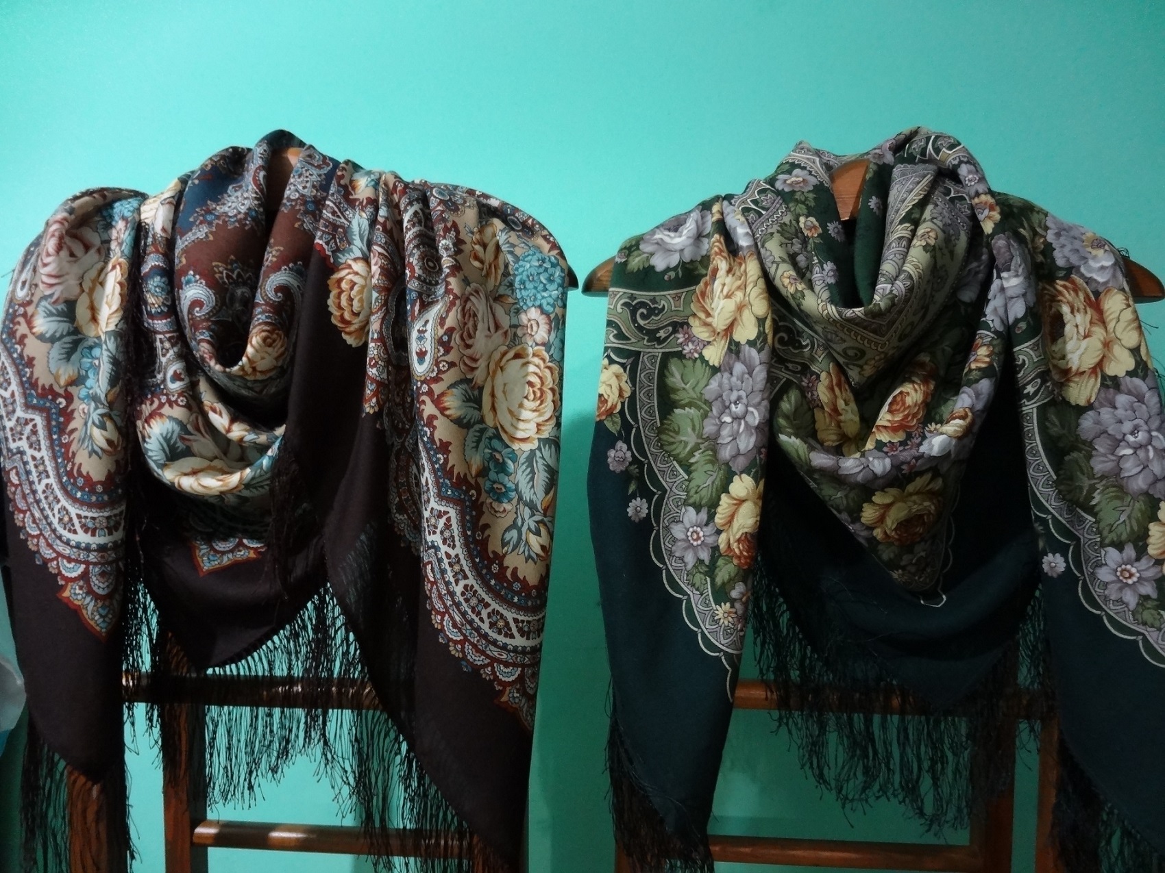 Испанское вино 17 и Праздник покрова 9 Эти два платочка для меня в " одной весовой категории". Оба спокойны, красивы, неповторимы, и оба, на мой взгляд, на одинаковой ткани.