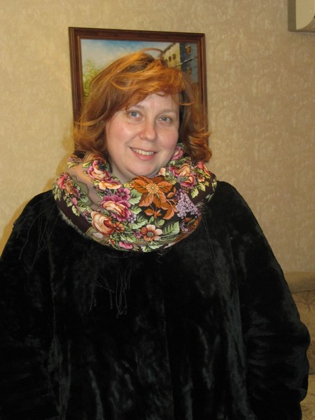 Вообще эти фото обязательно нуно в архив. Перекиньте, пожалуйста, в примерочную. И намотка хороша и шаль прекрасно видна, и цветопередача натуальная. А Вы - красавица!