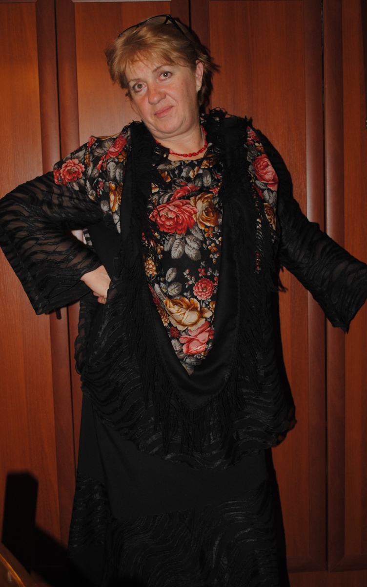 Татьяна СПб – «Варенька» - платочек замечательный. Ох, и розы на нём красивые! У меня такой чернопольный. И шапка какая интересная! Да ещё и с бубенчиками!