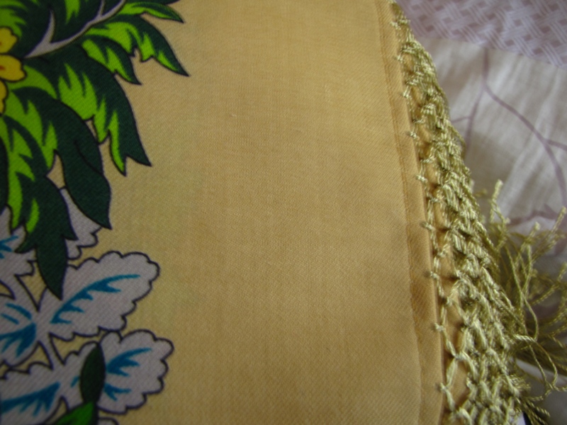 . В результате оба платка выходили слишком желтыми или приобретали жуткий сероватый оттенок. Покажу лучшие из попыток, а также фото бахромы на новой Волшебнице по просьбе Верины.