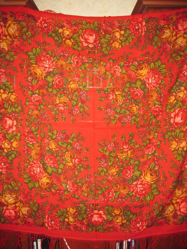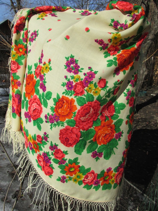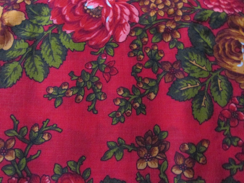 Надо сказать, что красная Цветочная сказка и бордовая - просто совсем разные платки. Ничего общего, кроме общего времени изготовления. Мне обе нравятся, но по-разному. Бордовая Цветочная Сказка в моем восприятии - бархат, на котором горят, как огоньки, живые, ароматные, огромные розы - жаркие!