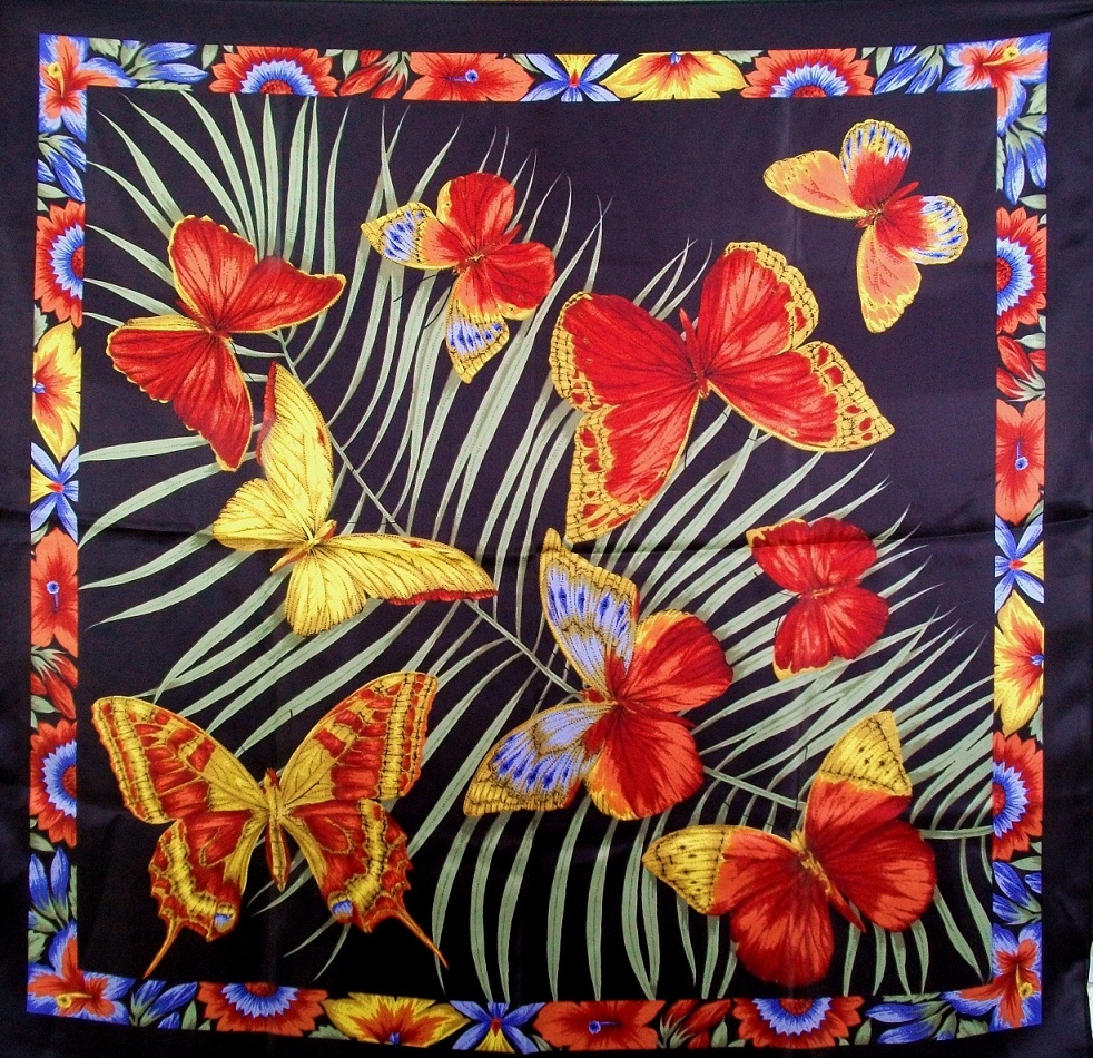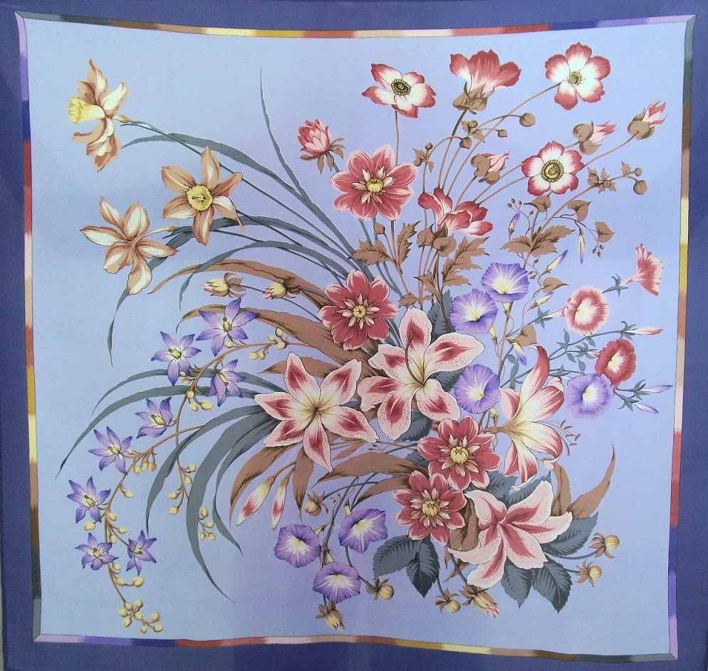 Еще одно "бесполезное" сравнение синих Каравана и Русских сезонов, где видно, что кайма у них одинакового цвета. И пара шелковых платков.
