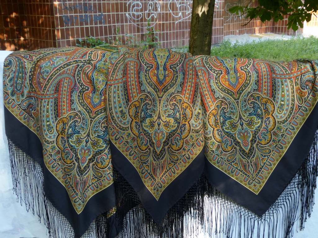 Кстати, на фото, где три шали висят углом, центральная тусклая, а Светина новой печати с датой 10.06.2019 слева, она яркая! Вот!!!