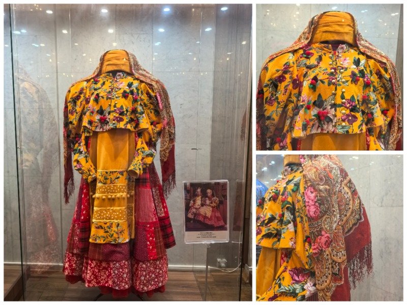 В декабре были с детьми в Музтеатре г. Ростова-на-Дону. И приятной неожиданностью было увидеть в фойе театральный костюм с павловопосадским платком. Яндекс помог узнать, что это был платочек Звонница (1158-4, 125x125 см, автор Елена Фаворитова). Спустя неделю, попав в магазин ППМ, взгляд "случайно" зацепился за красно-рыжие узоры. И что вы думаете?! Это была Звонница! Конечно, я её купила, не просто так она меня преследовала. Красивый платок!