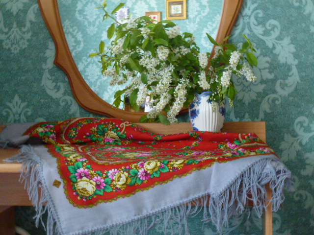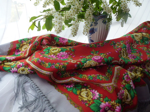 tryn-trava, платочек такой красивый. Разглядывала ярко-красные розы, цветки сирени в кисти и белые, и как-будто уже отцветшие. Цветочки все такие натуральные. Вживую не видела этот платок, но на ваших фото очень он мне понравился. (Кликните, чтобы почитать оффтопик)...