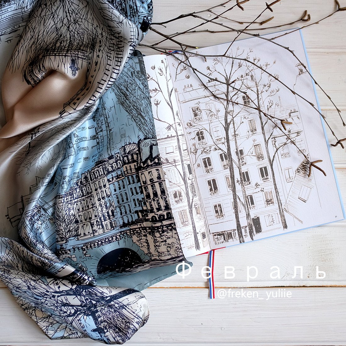 Ночь на дворе, а между тем наступил новый месяц - февраль. Днём, похоже буду занята, по этому сразу публикую своё февральское фотонастроение. Как всегда, с мечтами о Париже. Наш известный атласный платок от Инны и книга с рисунками Джейсона Брукса гениально, на мой взгляд, совпали и друг с другом и с моим февральским настроением.