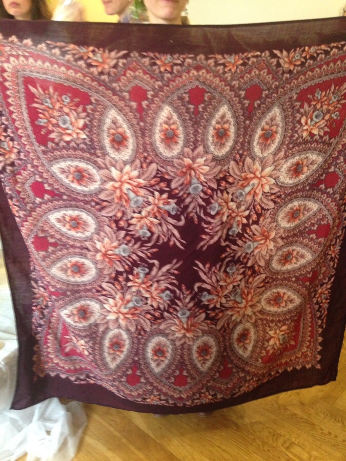 ТаЮрик Прелестный платок, поздравляю с приобретением. Всё-таки прежние белопольные платки мануфактуры были интереснее. Рисунок придумывался именно для белого фона и не возникало ни малейшего диссонанса, платки были гармоничны.