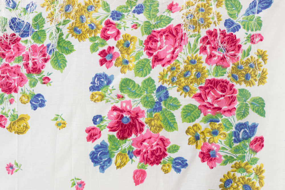 Вот очередная - хлопок с х.б. бахромой. Мягкий, тонкий, хорошо драпируется. Мне очень нравятся эти роскошные розы и трогательные хрупкие веточки. В БС не нашла такого.