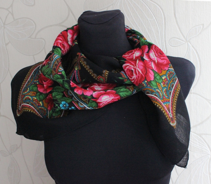В размере 72х72 такие платочки хорошенькие! Вот купила бы почти все. Но такие крохотули у меня никак не носятся. Это я проверила: с незапамятных времен (лет 10-15 уже) лежат у меня два Ритма - бордовый и синий. Красота - сил нет, а намотать некуда. Но зато из-за них я о больших платка ППМ и мечтать и искать их стала.