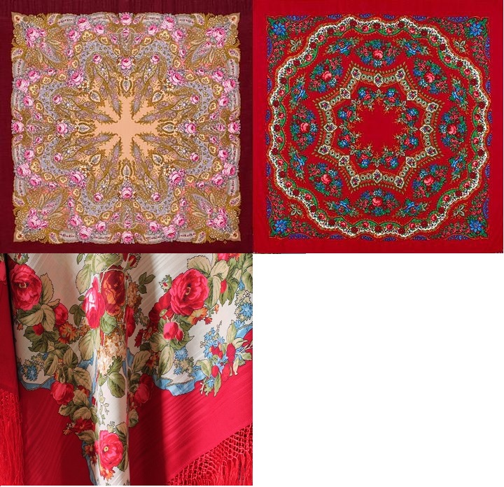 Самая многочисленная группа - черные шали 148х148 (вроде бы ничего не забыла, только не включила Финифть-19, т.к. она у меня обрезана, с осыпкой и носится только на работе). синие шали 148х148 красные и бордовые 148х148