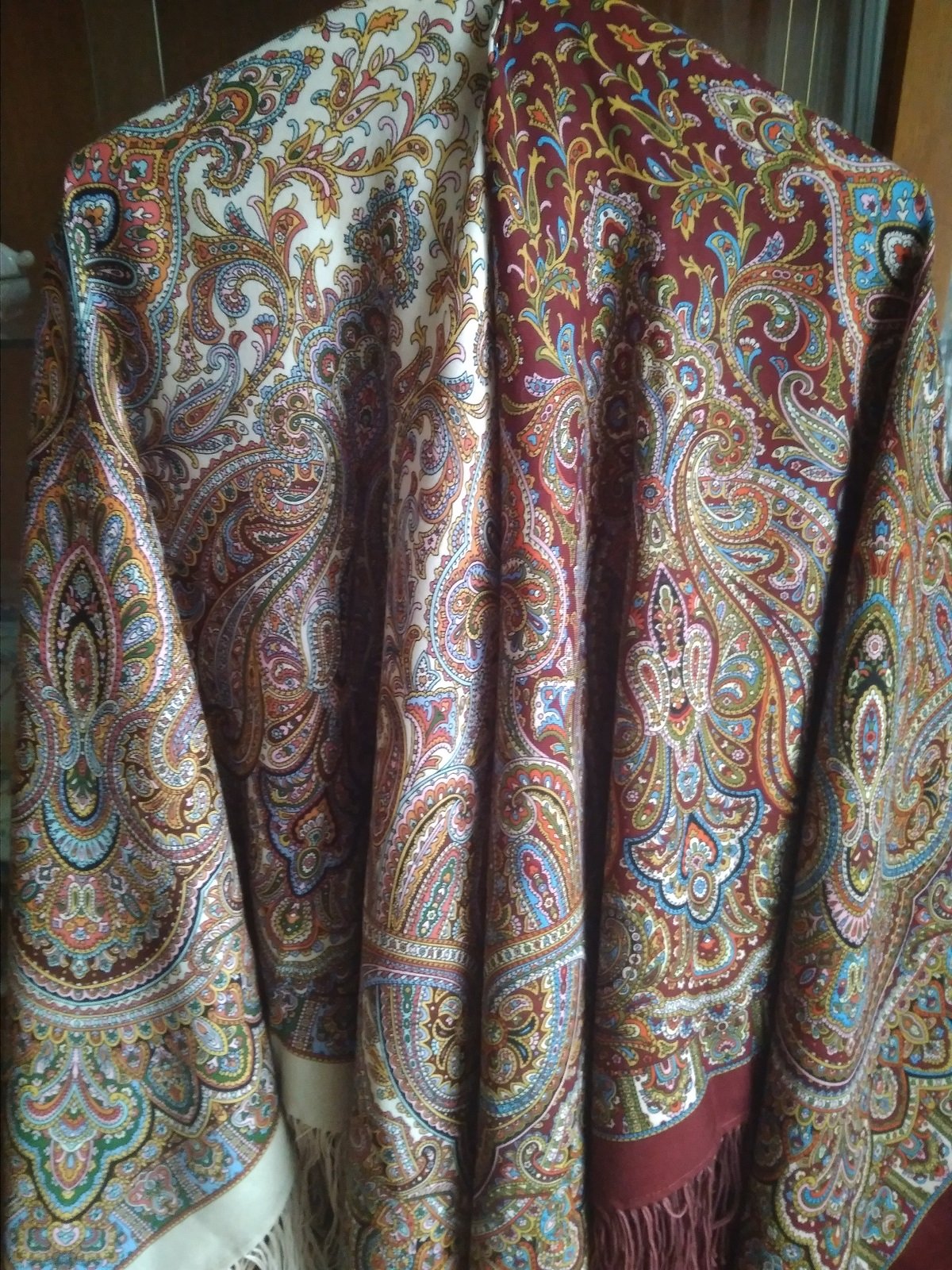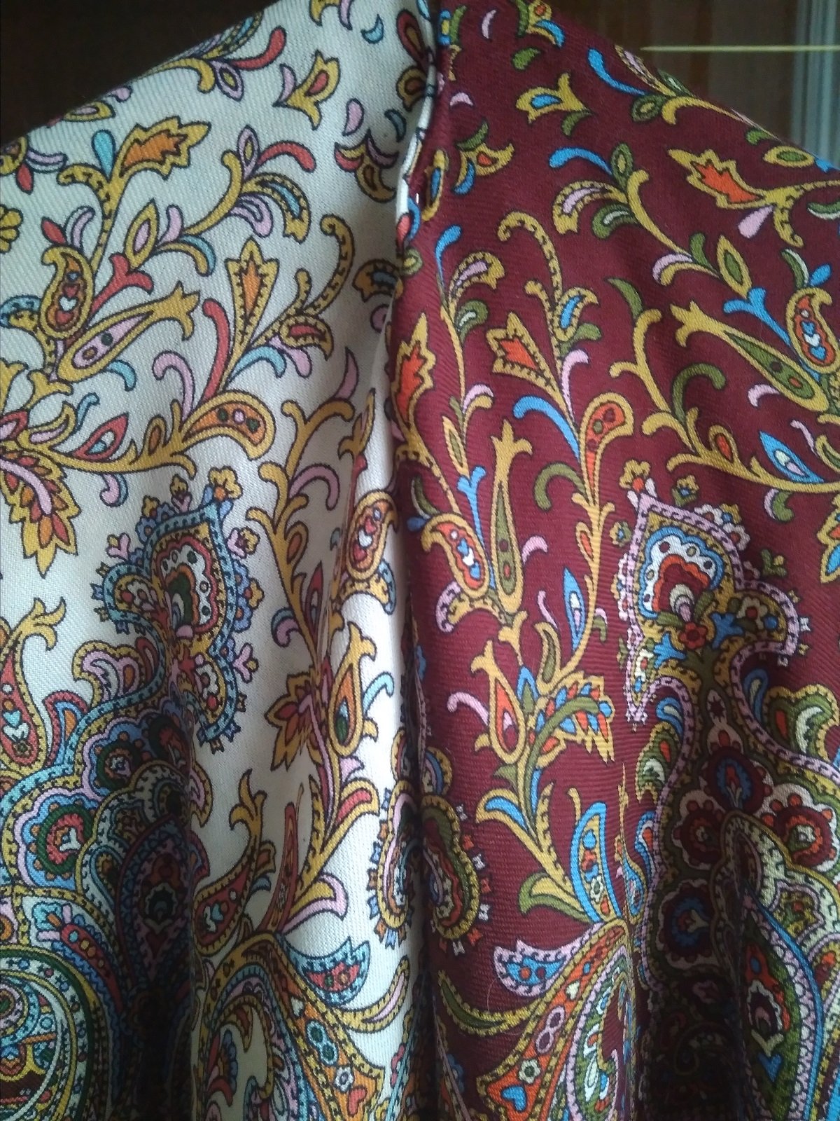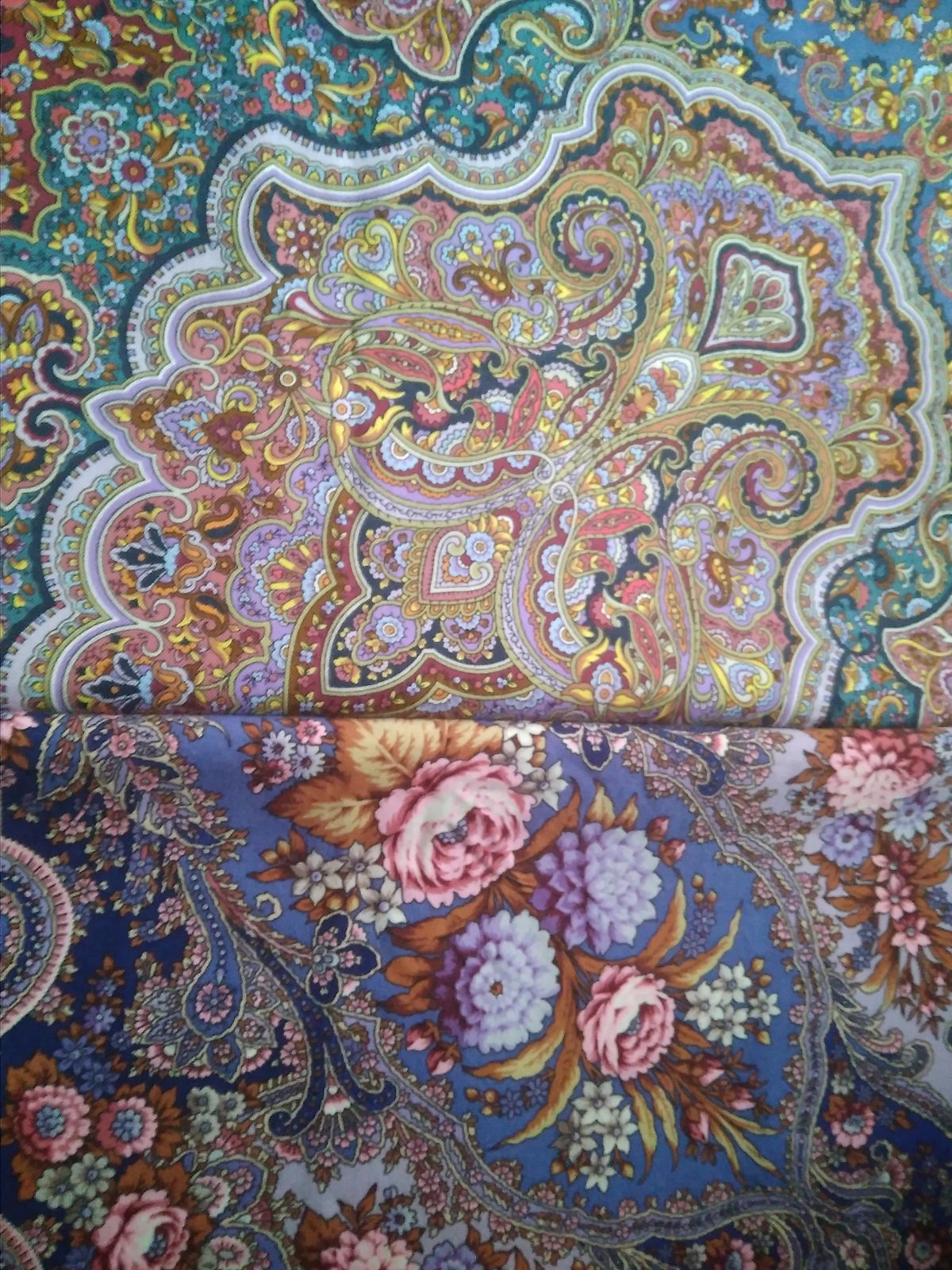 На фото получились как сквозь дымку, в реальности платки более яркие