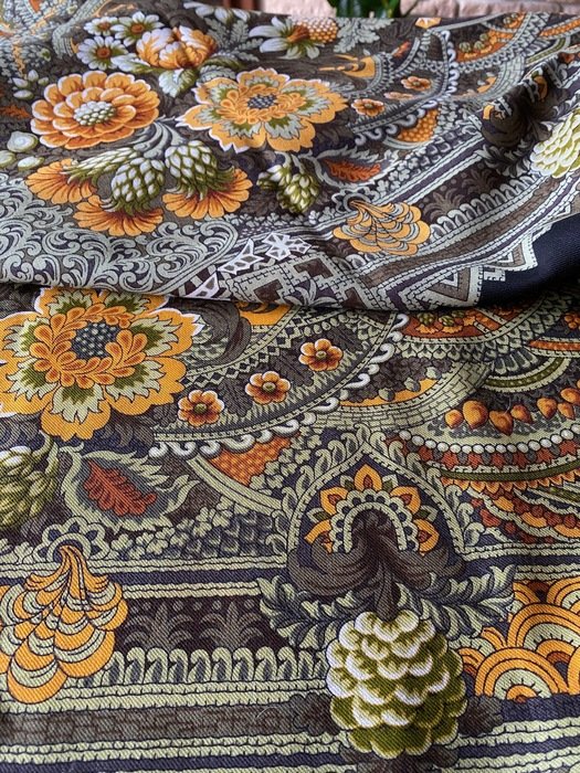 Такая разная печать Терема расписного-2. Впечатление, что фото сделаны при разном свете ( справа-электрический) , но это не так. Везде яркий дневной свет, это платки разные.