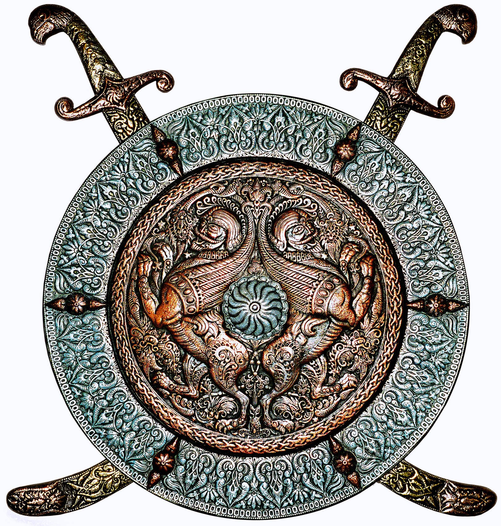 Татьяна,когда увидела на сайте платок и загнутые на нем орнаментальные узоры сразу вспомнилось виденное давно. Это герб татаро-монгол, воинов племени Чингиз хана. Территория Сибири долгое время принадлежала им. Эти причудливо изогнутые орнаменты, как острые кривые ножи, которыми воины сражались за сердце красавицы. Вот тогда и полюбила ее, только собрать все колориты не удаётся.