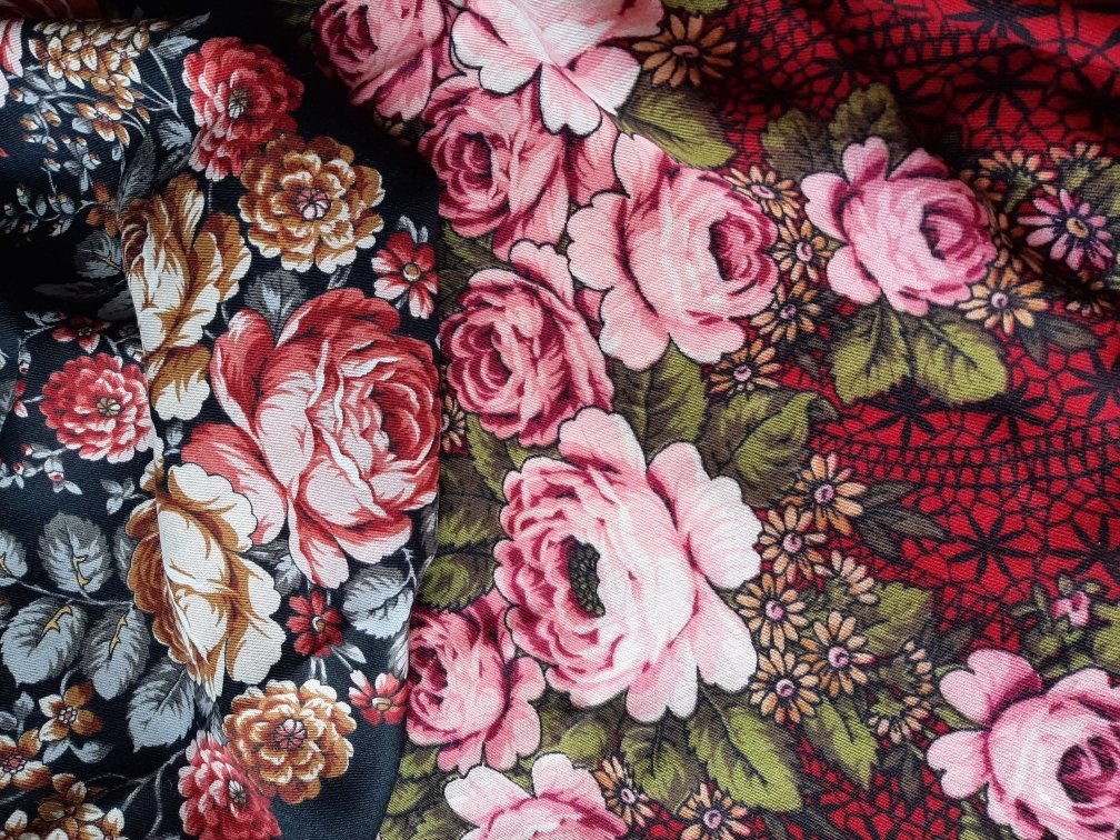 В целом, платки и по стилю разные. "Когда поет сердце" - более демократичный, даже, может быть, фольклорный. А "Цветочная сказка" - пышность классических текстильных букетов.